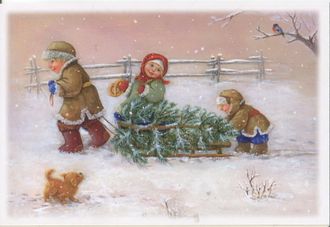 Серия "Ребятишки". "Трое с елкой". Размер 10х14 см.